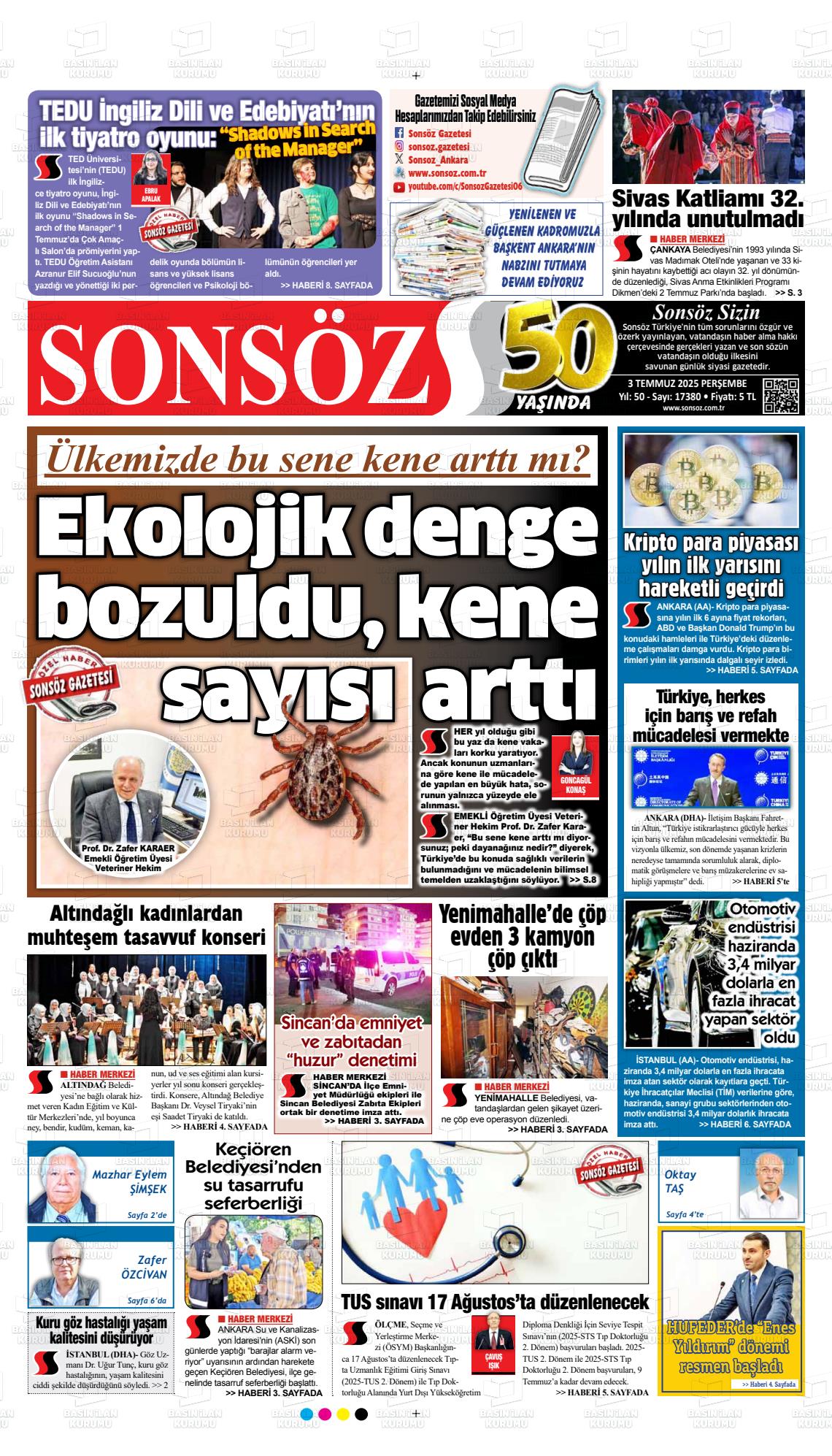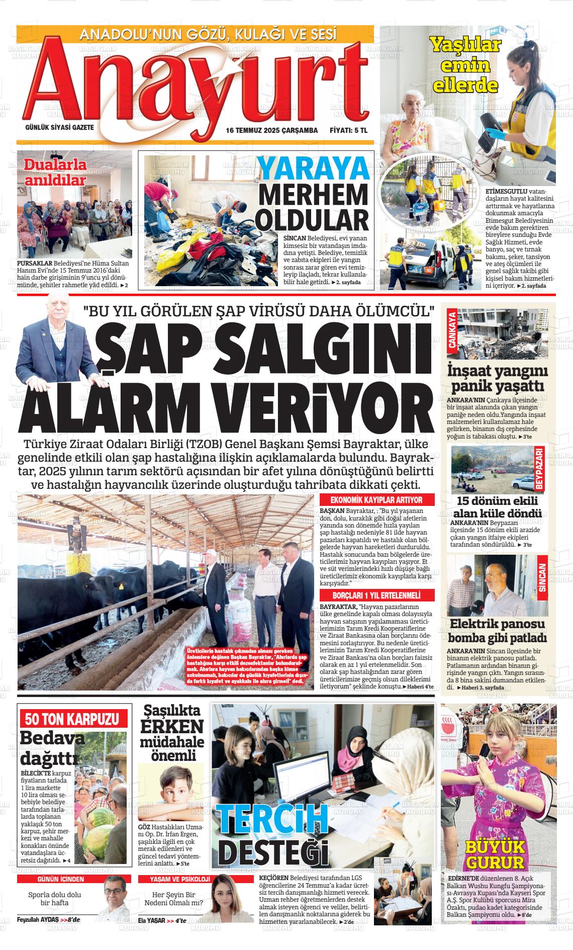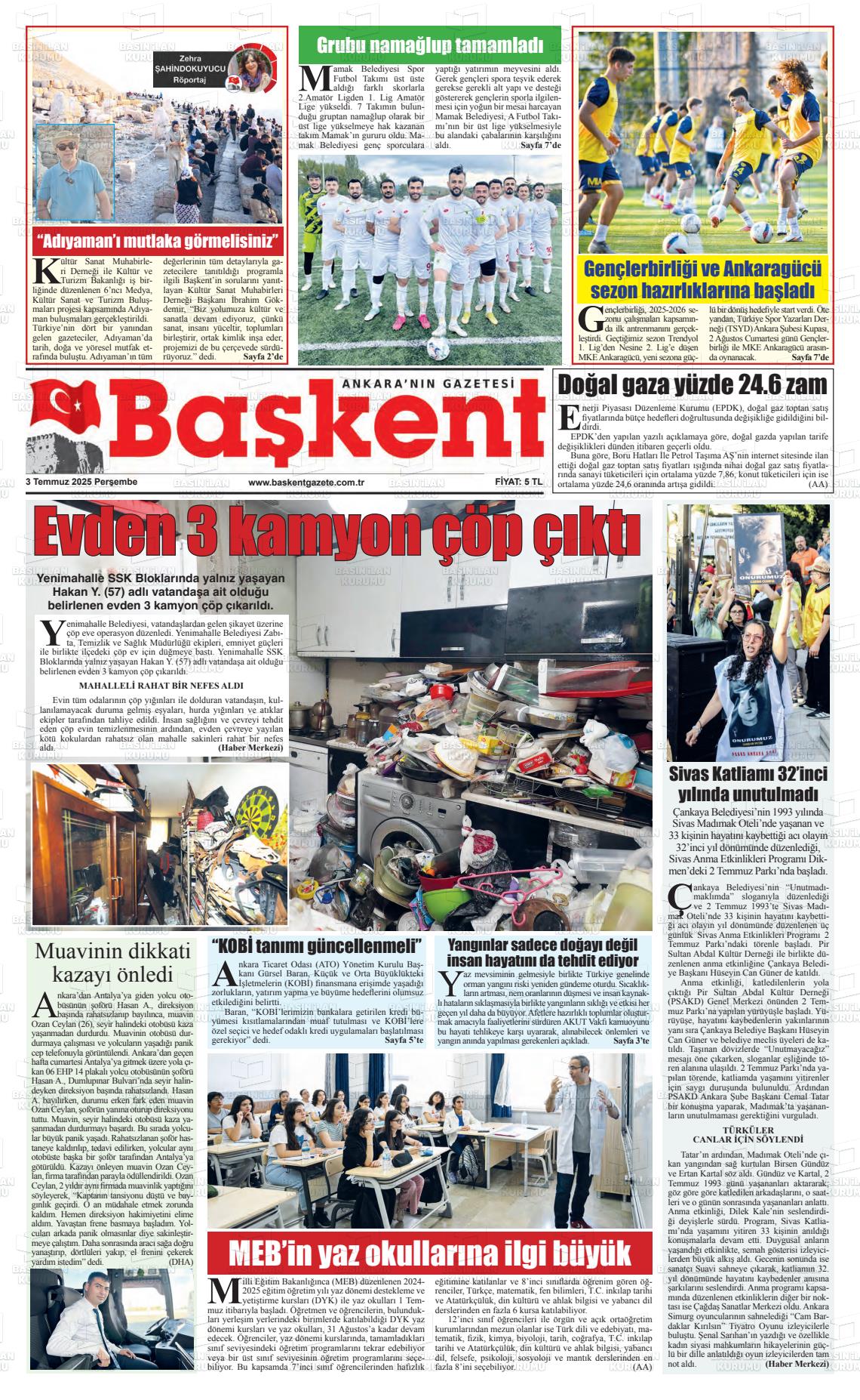 Ankara Yerel Gazeteleri 13 Ekim 2025, Pazartesi Günü Manşeti