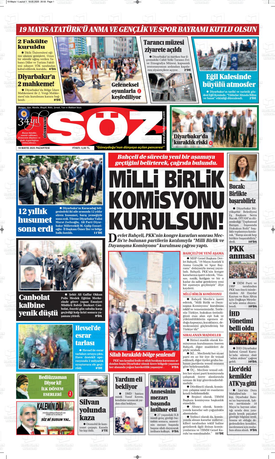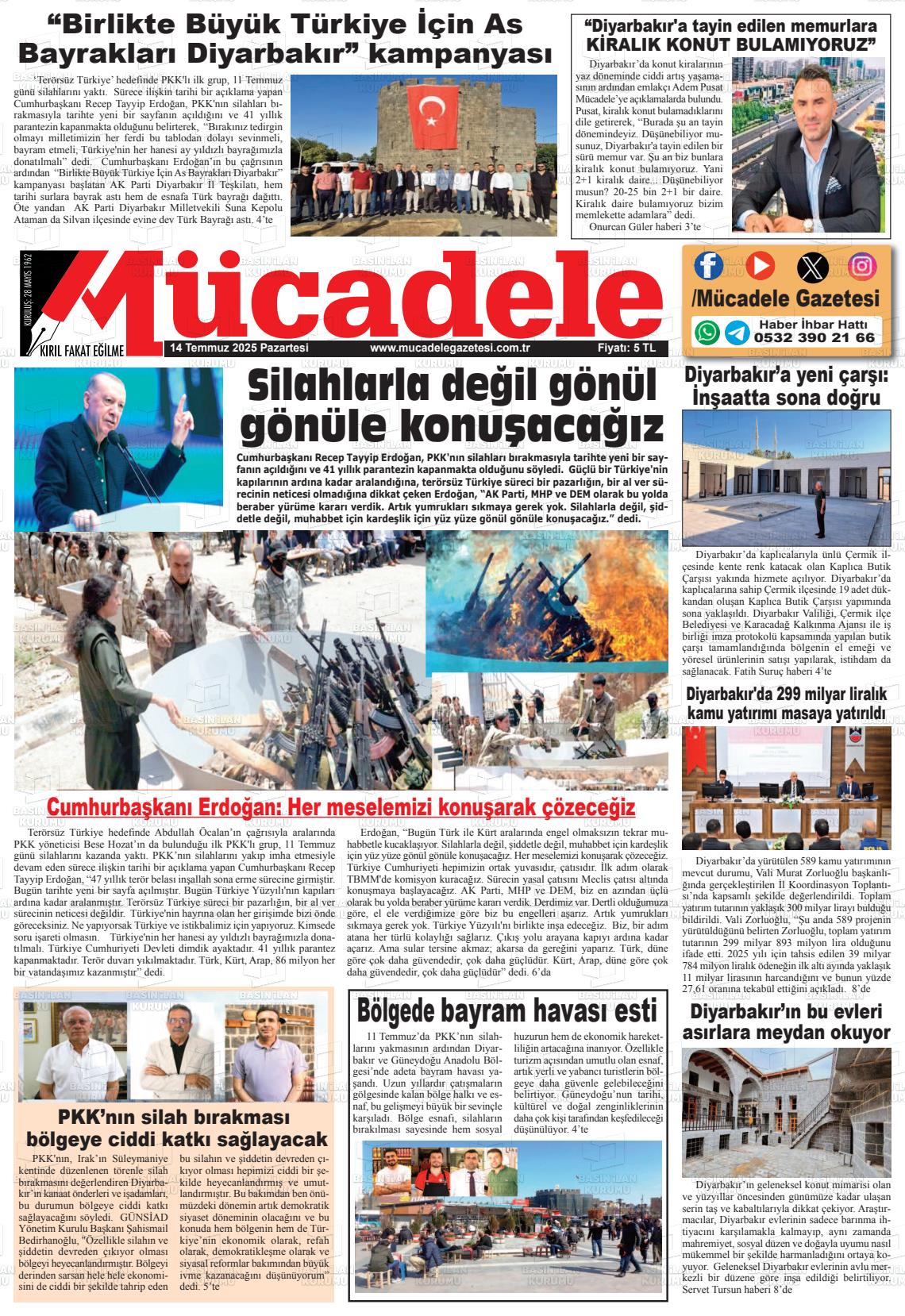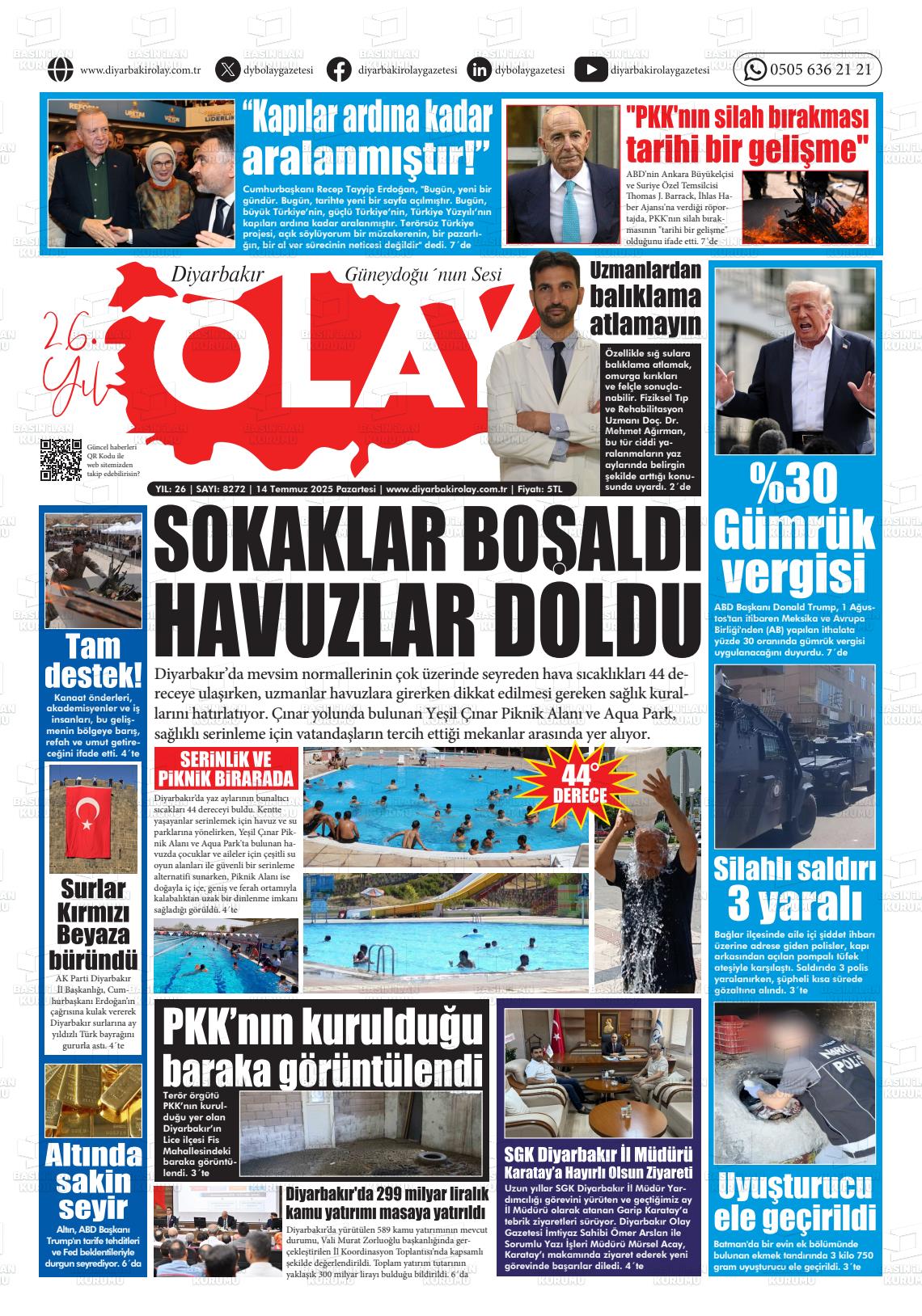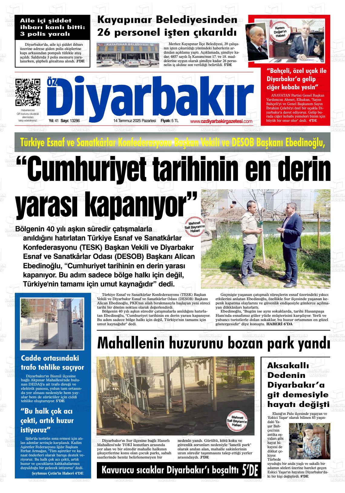 Dİyarbakır Yerel Gazeteleri 09 Aralık 2025, Salı Günü Manşeti