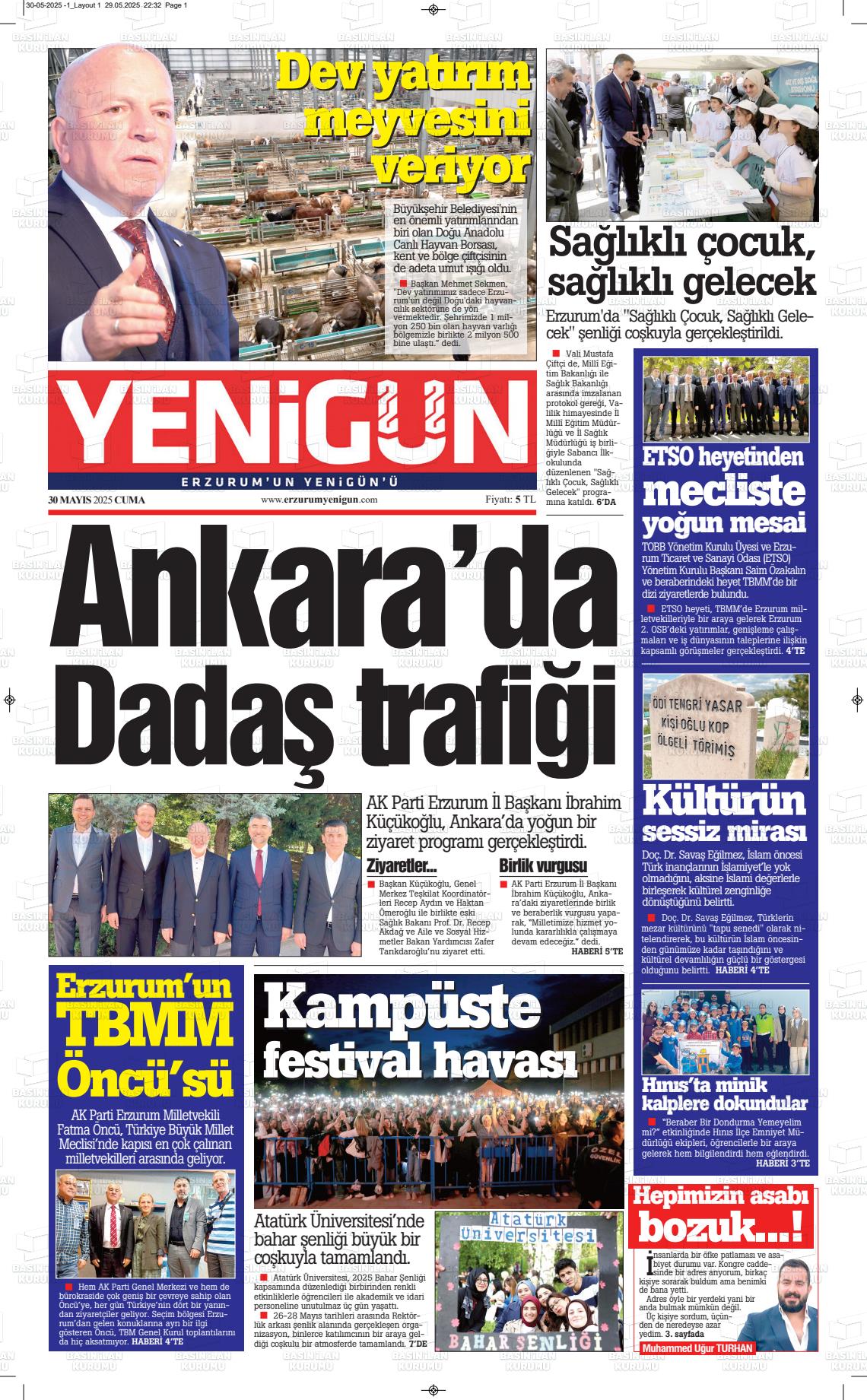 Erzurum Yerel Gazeteleri 10 Aralık 2025, Çarşamba Günü Manşeti