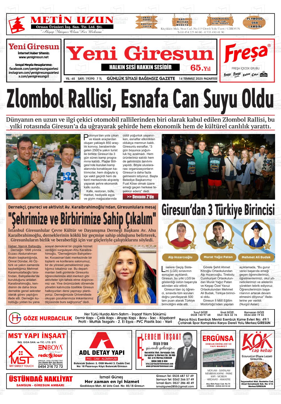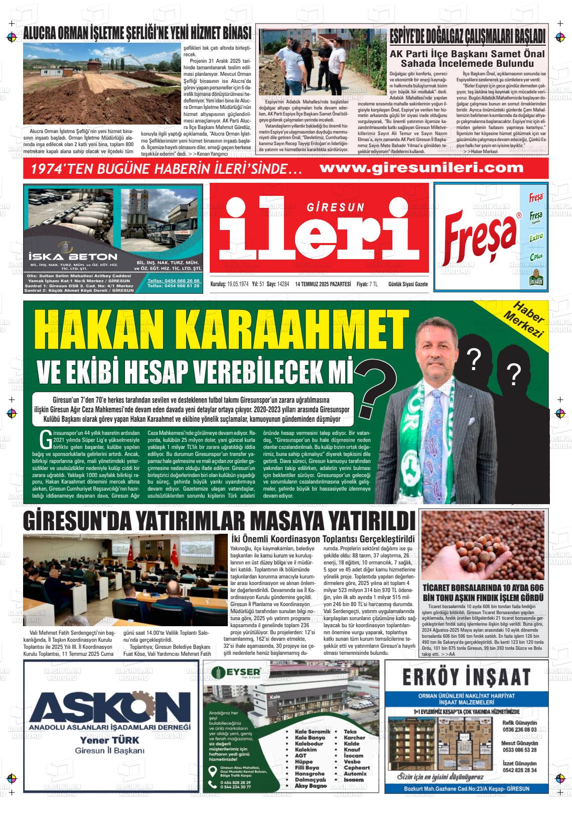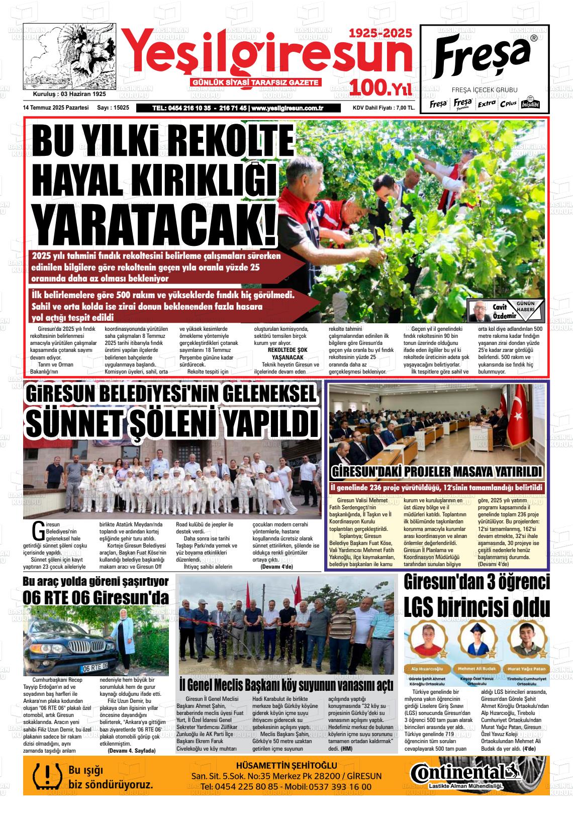 Gİresun Yerel Gazeteleri 10 Aralık 2025, Çarşamba Günü Manşeti