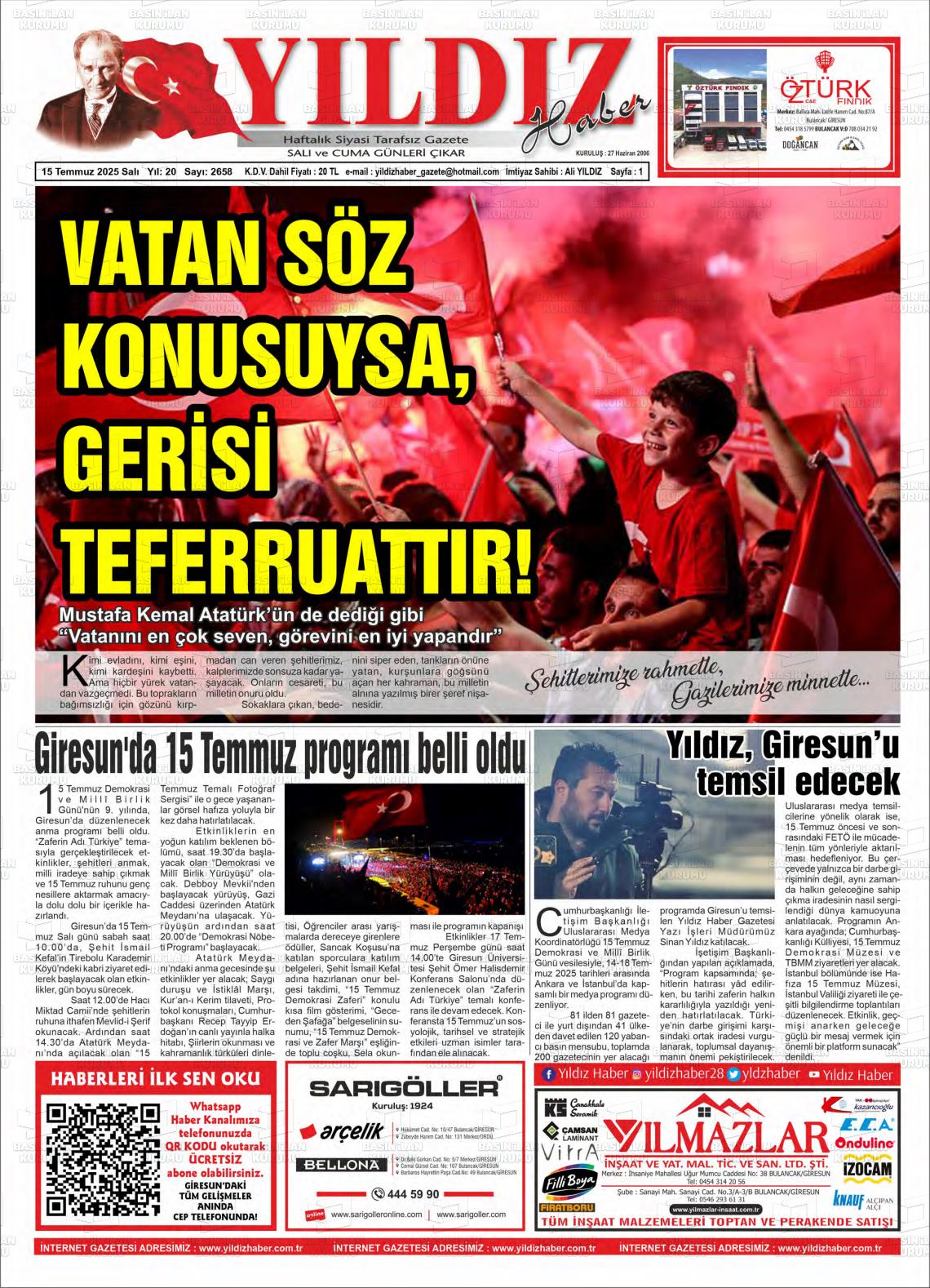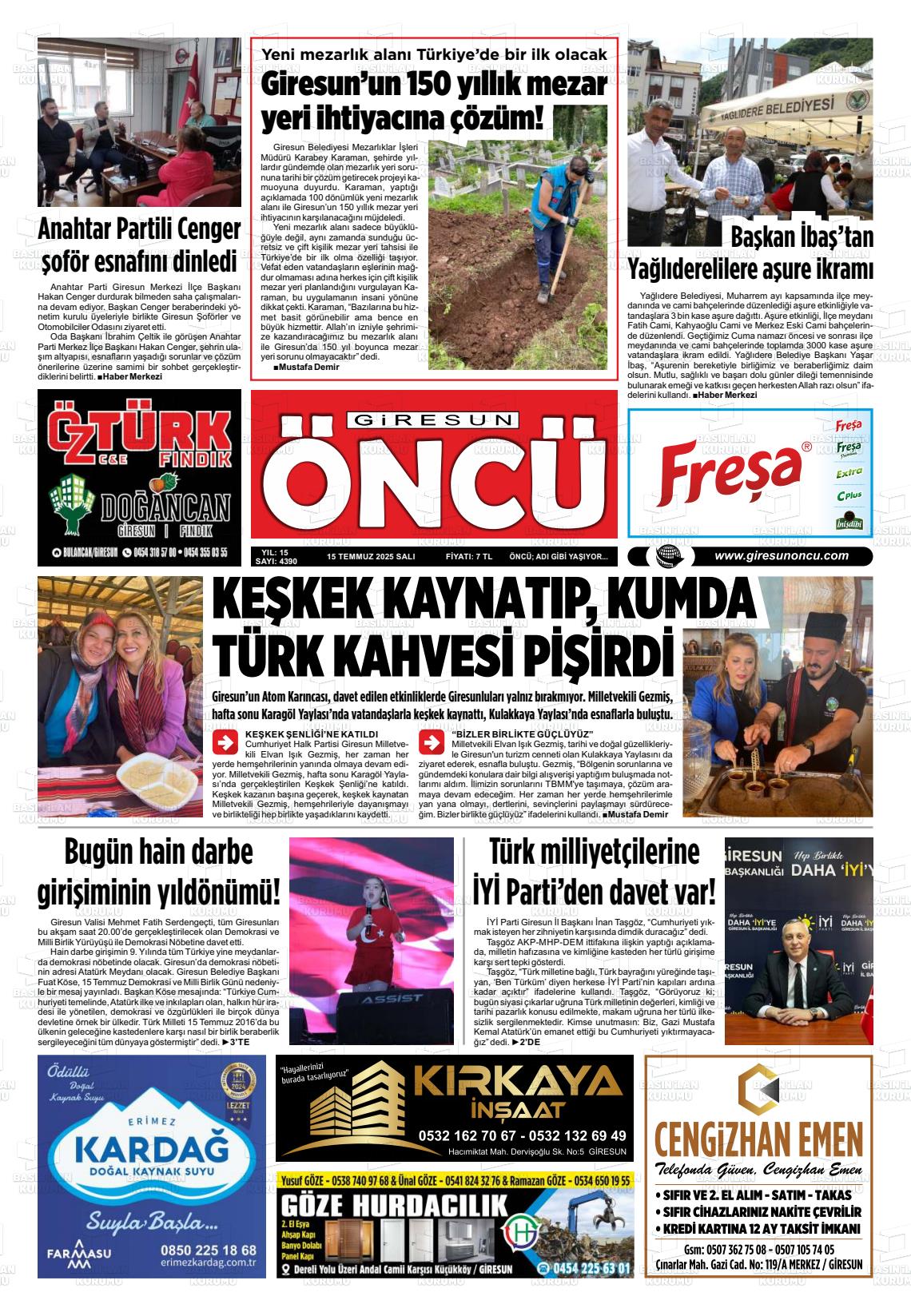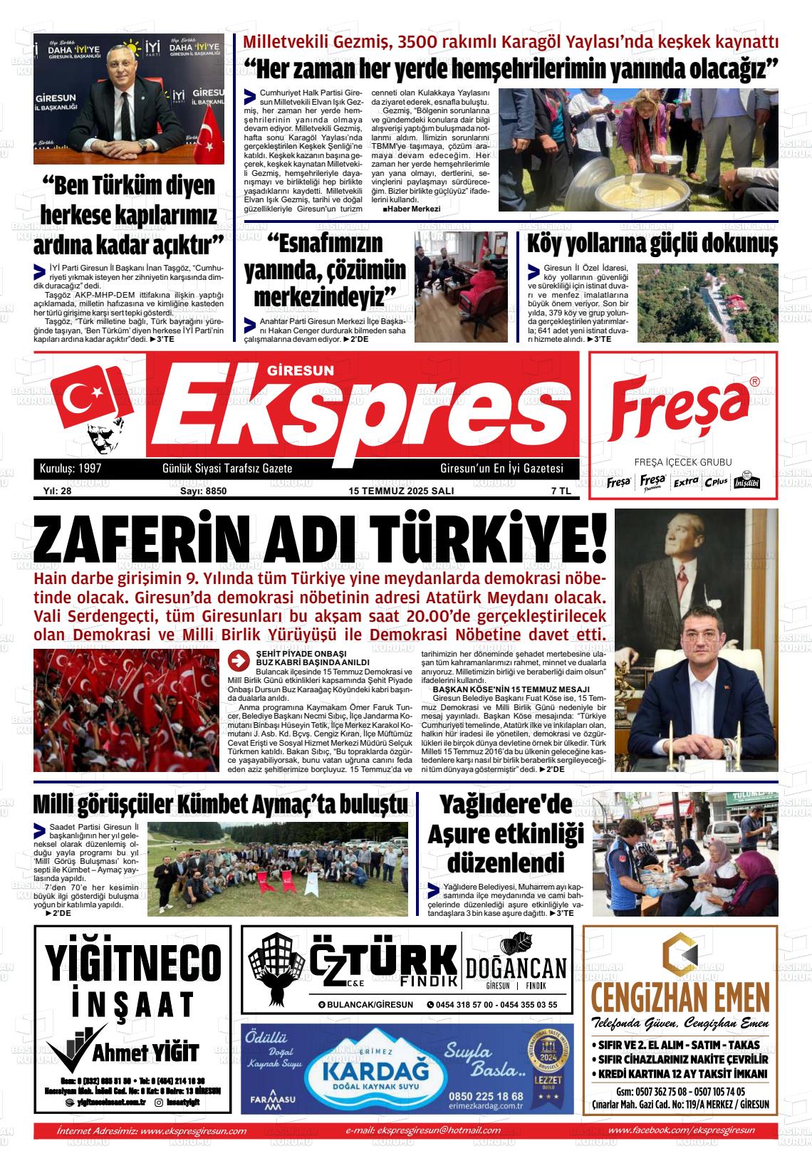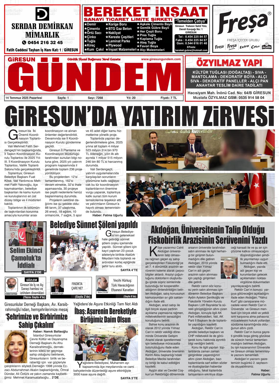 Gİresun Yerel Gazeteleri 10 Aralık 2025, Çarşamba Günü Manşeti
