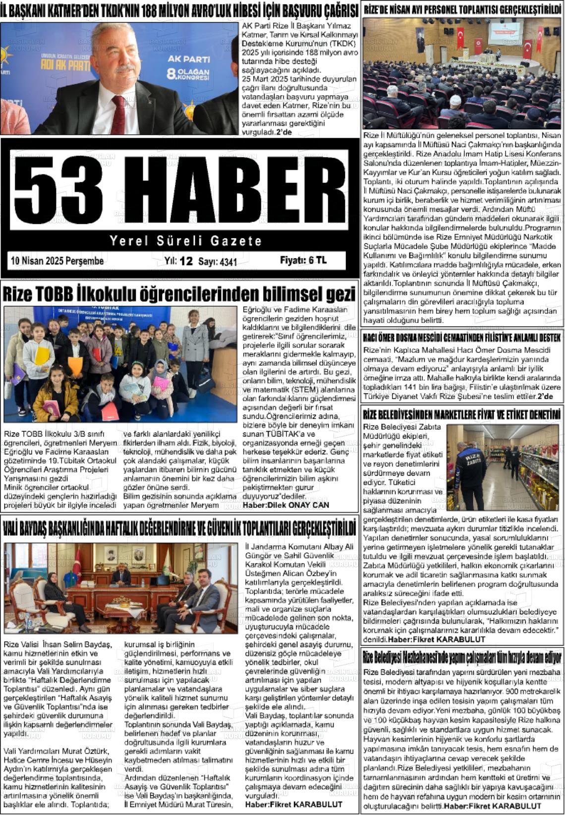 Rİze Yerel Gazeteleri 10 Aralık 2025, Çarşamba Günü Manşeti