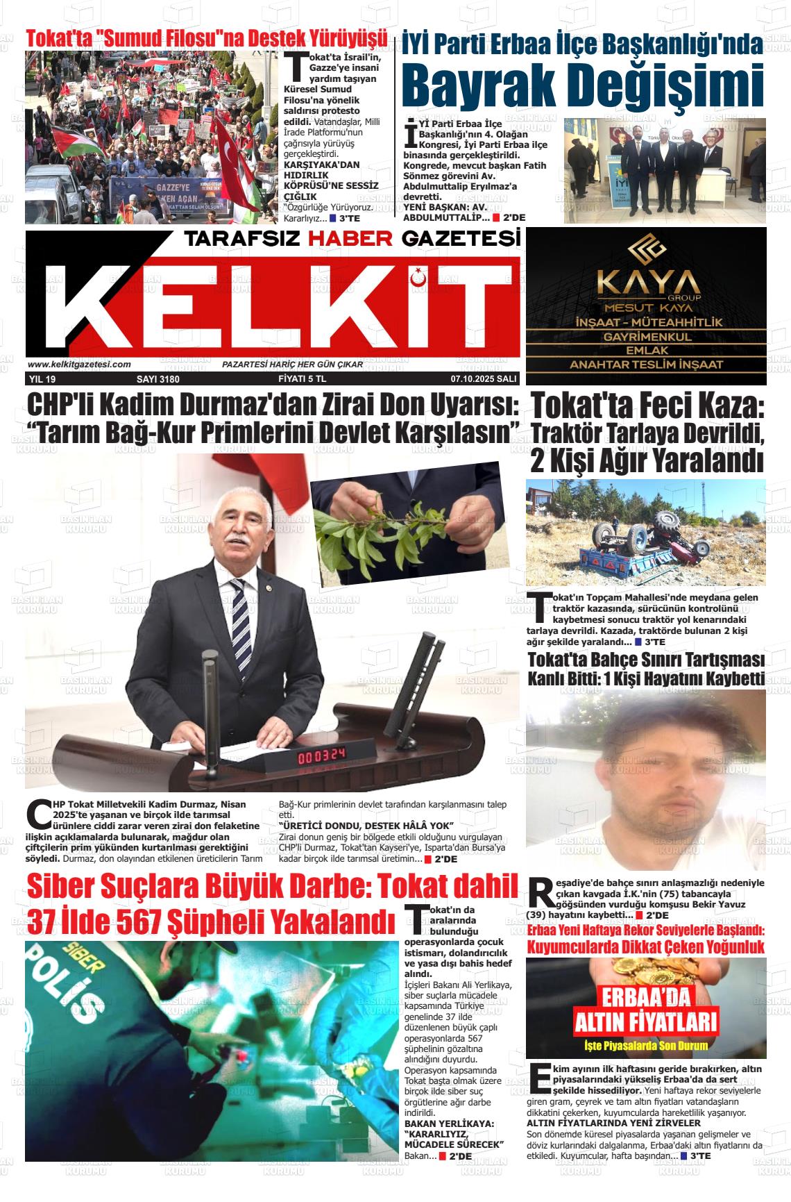 Tokat Yerel Gazeteleri 21 Mart 2026, Cumartesi Günü Manşeti